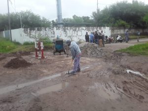 Un grupo de operarios municipales, bajo la supervisión del intendente Héctor Ibáñez, trabajó intensamente la mañana de este miércoles en las calles de Añatuya, más precisamente en la arteria denominada Agustina Palacio de Libarona y Ramos Mejias del barrio San Jorge.