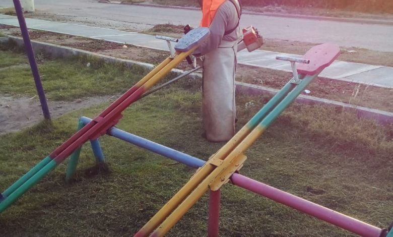 En esta semana se llevó a cabo el mantenimiento de las plazas de la Capital de la Tradición. Los trabajos consistieron en desmalezamiento, corte de césped y el arreglo de los juegos infantiles. Por ejemplo los integrantes del área de Parques y Paseos trabajaron en las plazas Antonio Loro Leguizamón, Bio Saludable, Dr Eduardo Gelid y 27 de Abril. También se realizaron diferentes tareas de mantenimiento en las plazas Los Amiguitos, La Leñera, Alfredo Pololo Nuevo y Juan XXlll, entre otros. “Estamos convencidos que recuperar el espacio público es vital porque el espacio público beneficia a todos los ciudadanos”, sostuvo el intendente Héctor Ibáñez. Luego acotó “los vecinos saben de la vocación de mejorar las condiciones urbanas porque impacta directamente en la mejora de la calidad de vida de ellos. Estamos trabajando de manera conjunta desde las diferentes áreas. La recuperación es paulatina. Los dejamos libres de basura y malezas pero necesitamos de la colaboración de los vecinos”. Cabe señalar que en los últimos tres años se pudo observar un cambio significativo en la Capital de la Tradición a través de diferentes obras y mejoras que fueron planificadas y ejecutadas desde la municipalidad de Añatuya en los espacios públicos y plazas. A su turno la Lic. Claudia Rios, responsable del área de Parques y Paseos, expresó: “En estos espacios estamos realizando arreglos en general y pintura de los juegos y bancos de plaza. Estas tareas se enmarcan en el mejoramiento y puesta en valor de los espacios públicos, fundamentales para la vida de los vecinos y los que suelen visitarnos».